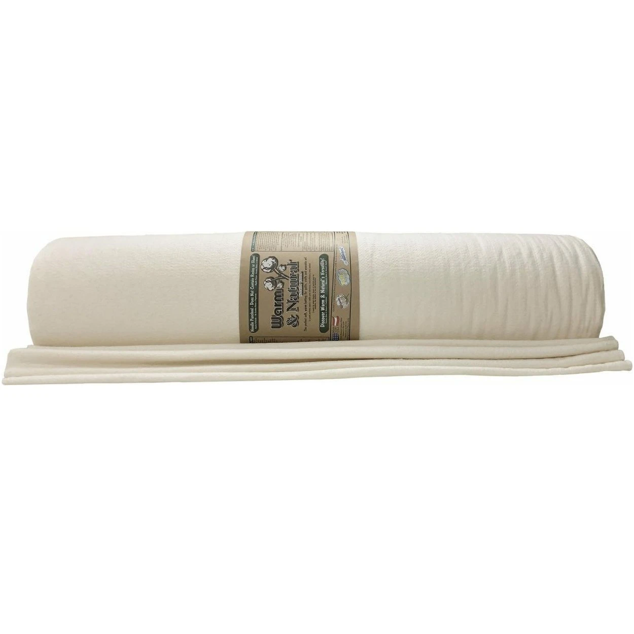 Quilt or tie up to 25cm (10″) apart! Quilt Warm and Natural right out of the package, as pre-washing is not necessary. Once quilted, machine wash and dry your finished quilt in cold water. 3% shrinkage can be expected in the first wash with cold water. To achieve an antique puckered look use warm water for 5% shrinkage. Warm and Natural won’t distort when hanging, hooping or when used in quilt frames. It can be used for both batting and as an exterior craft fabric.
