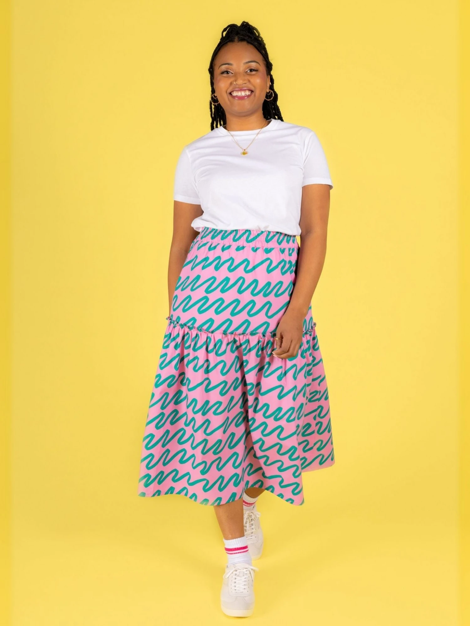 Sew yourself a floaty two-tier midi or three-tier maxi skirt with the Luella sewing pattern. The elasticated waistband offers a comfortable fit without any tricky fastenings. And of course it’s got pockets! A true wardrobe workhorse, Luella can be dressed up or down and styled for multiple seasons. Trust us, you’ll want to make more than one…