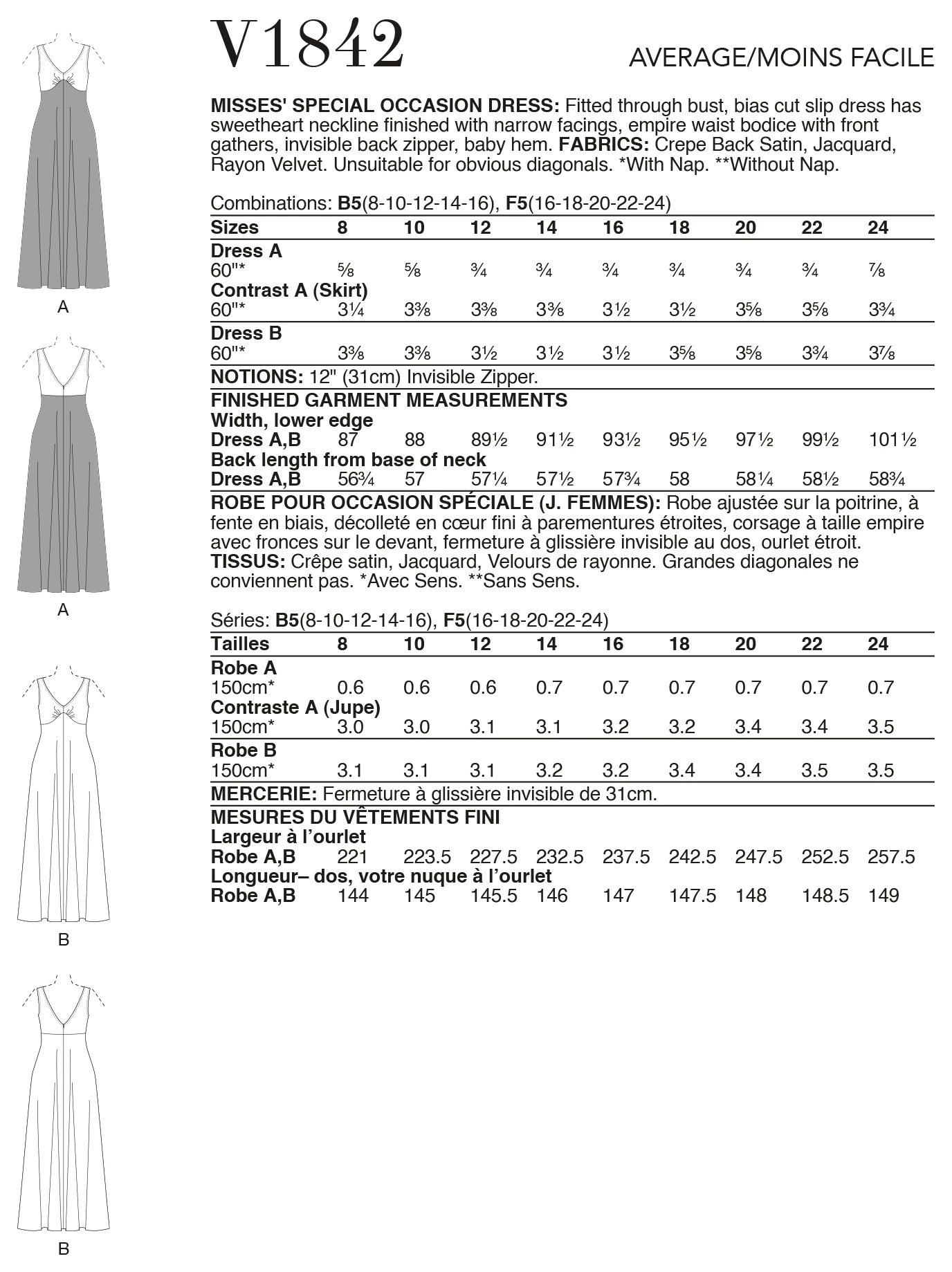 Fabrics: Crepe Back Satin, Jacquard, Rayon Velvet.