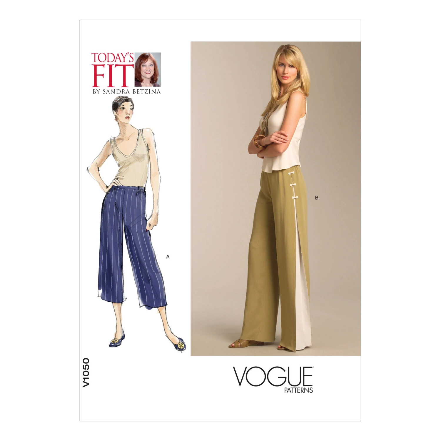 Introducing Vogue Pattern 1050 – the perfect choice for Misses’ pants! You’ll love the versatile options of lower calf or full length pants, both with slightly flared pant legs. The waistband features elastic at the sides for a comfortable fit, and there’s a convenient back zipper. Plus, option B adds a unique twist with contrast pleat underlay at the sides and optional trim inserts. Upgrade your pants collection with this stylish and comfortable pattern. Optional side closures: tie ends, purchased frog closures or bar tacks.