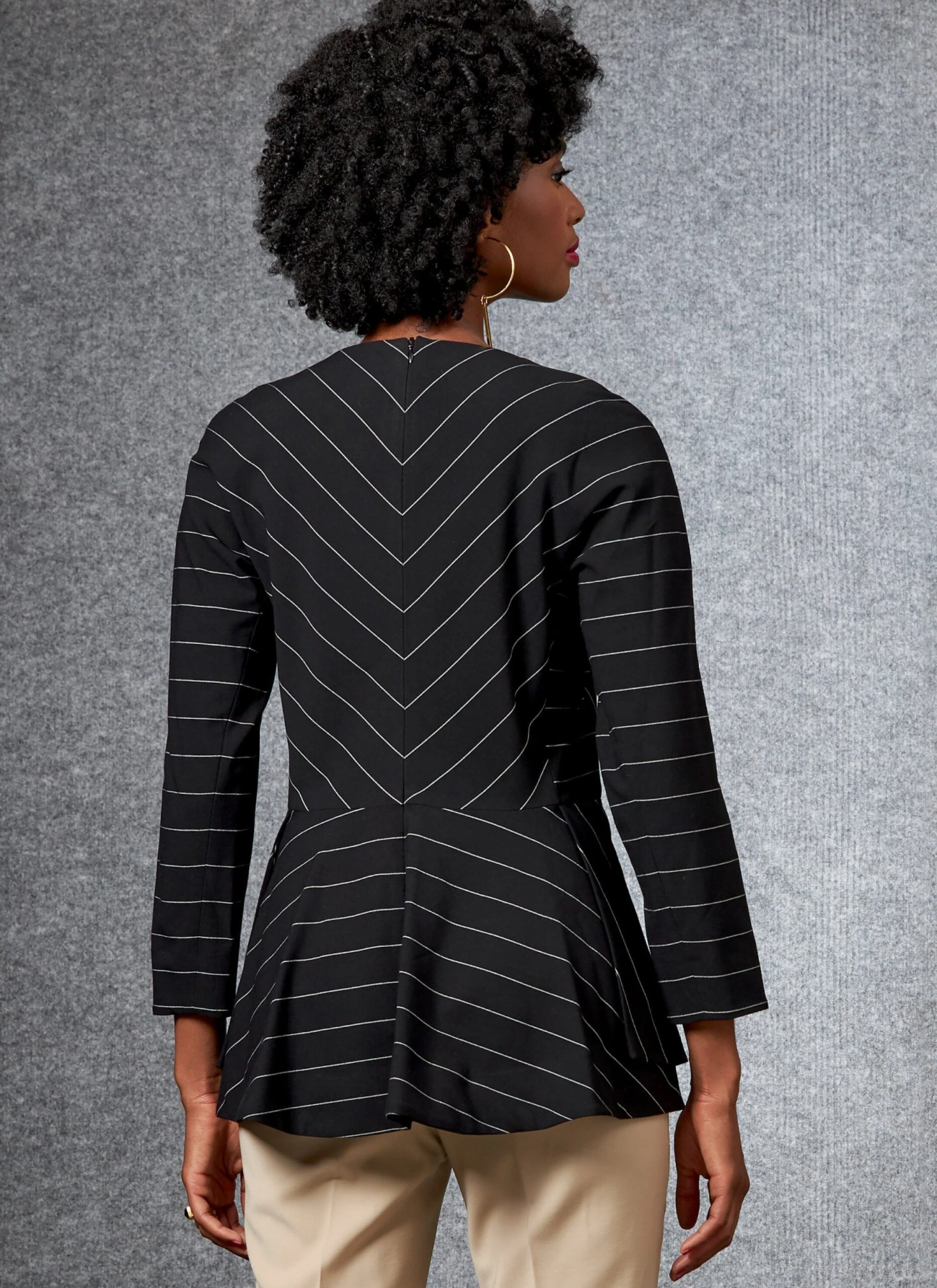 Top A is fitted through bust, has dolman sleeves with gusset and invisible back zipper. Top B is very loose fitting, pullover style with shaped hemline and side slits.