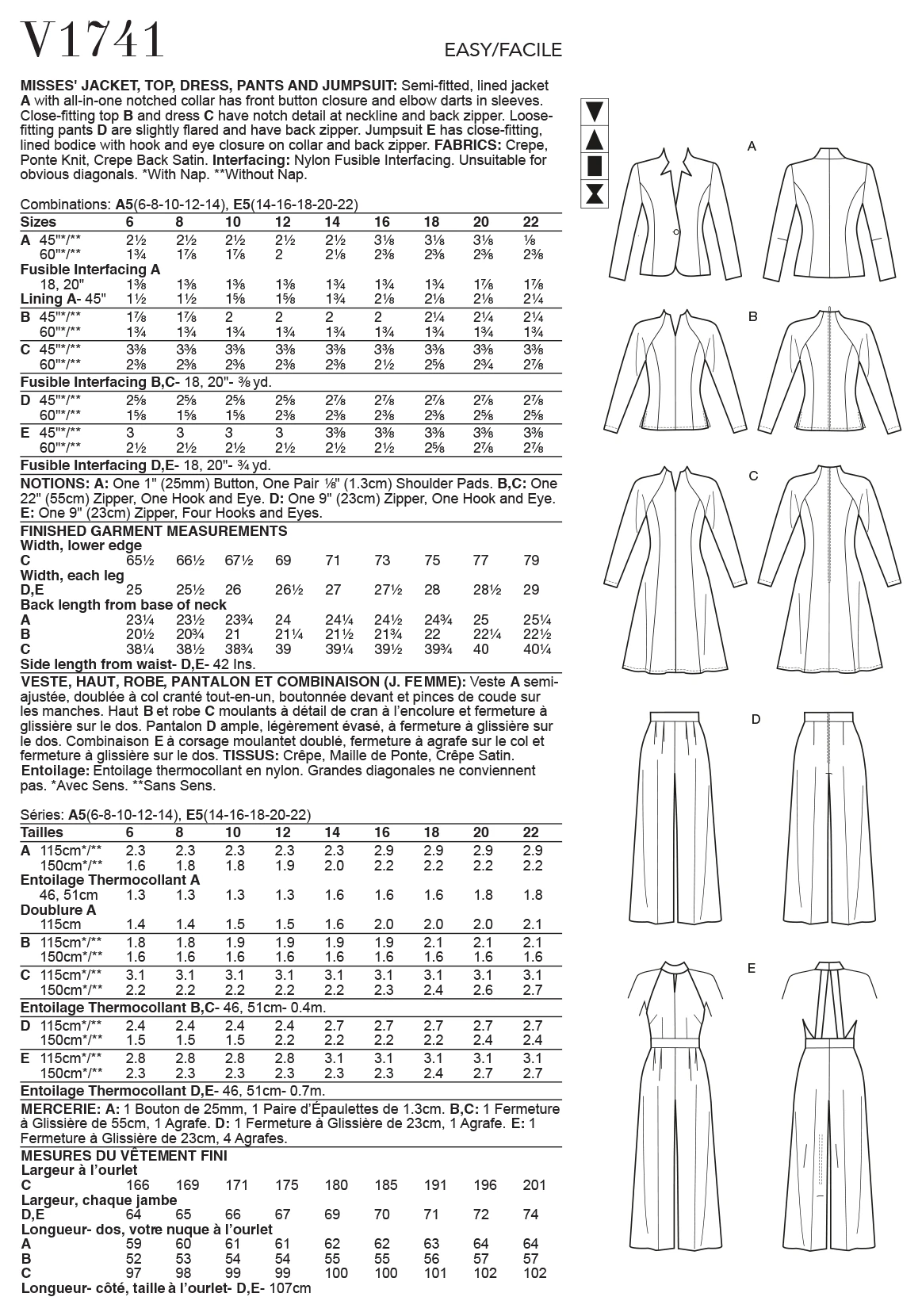 MISSES’ JACKET, TOP, DRESS, PANTS AND JUMPSUIT