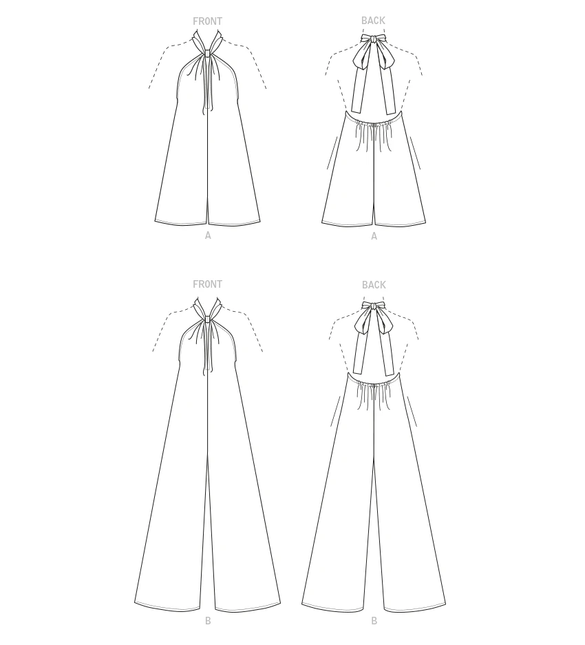 This Vogue Sewing Pattern is perfect for Misses’ and Misses’ Petite jumpsuits with a loose-fitting halter neck, tie neckline, and elastic back. It also features side seam pockets and offers length variations. The pattern is rated as very easy, making it perfect for any sewing level. For best results, avoid fabrics with obvious diagonals. Note: The fabric requirement accounts for napped, one-way design, or shading considerations. Extra fabric may be necessary for pattern matching or shrinkage. Recommended fabrics include Rayon Challis, Crepe, and Linen Blends.