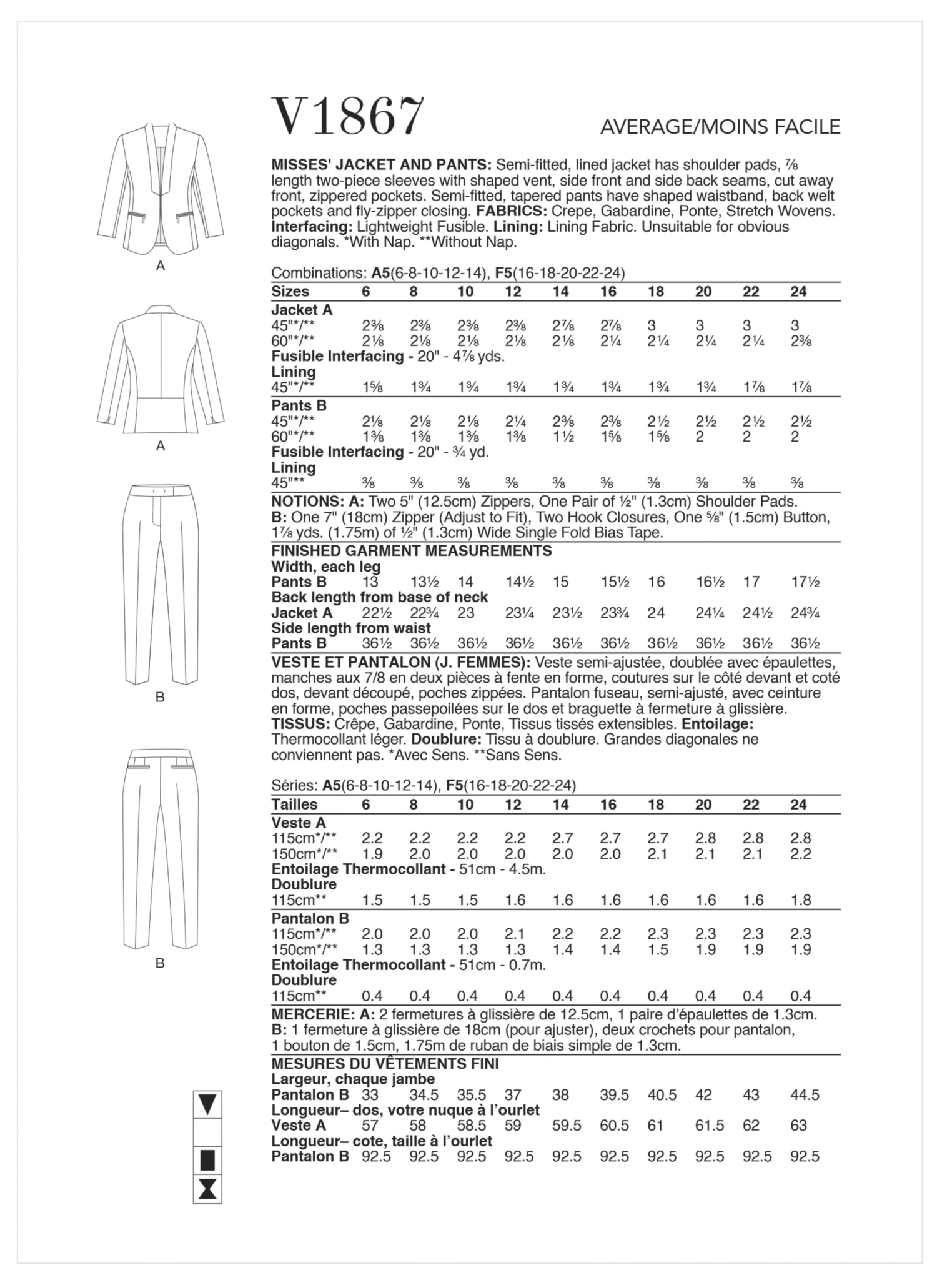 Be the first to review “Vogue Sewing Pattern 1867 Misses’ Jacket And Trousers” Cancel reply