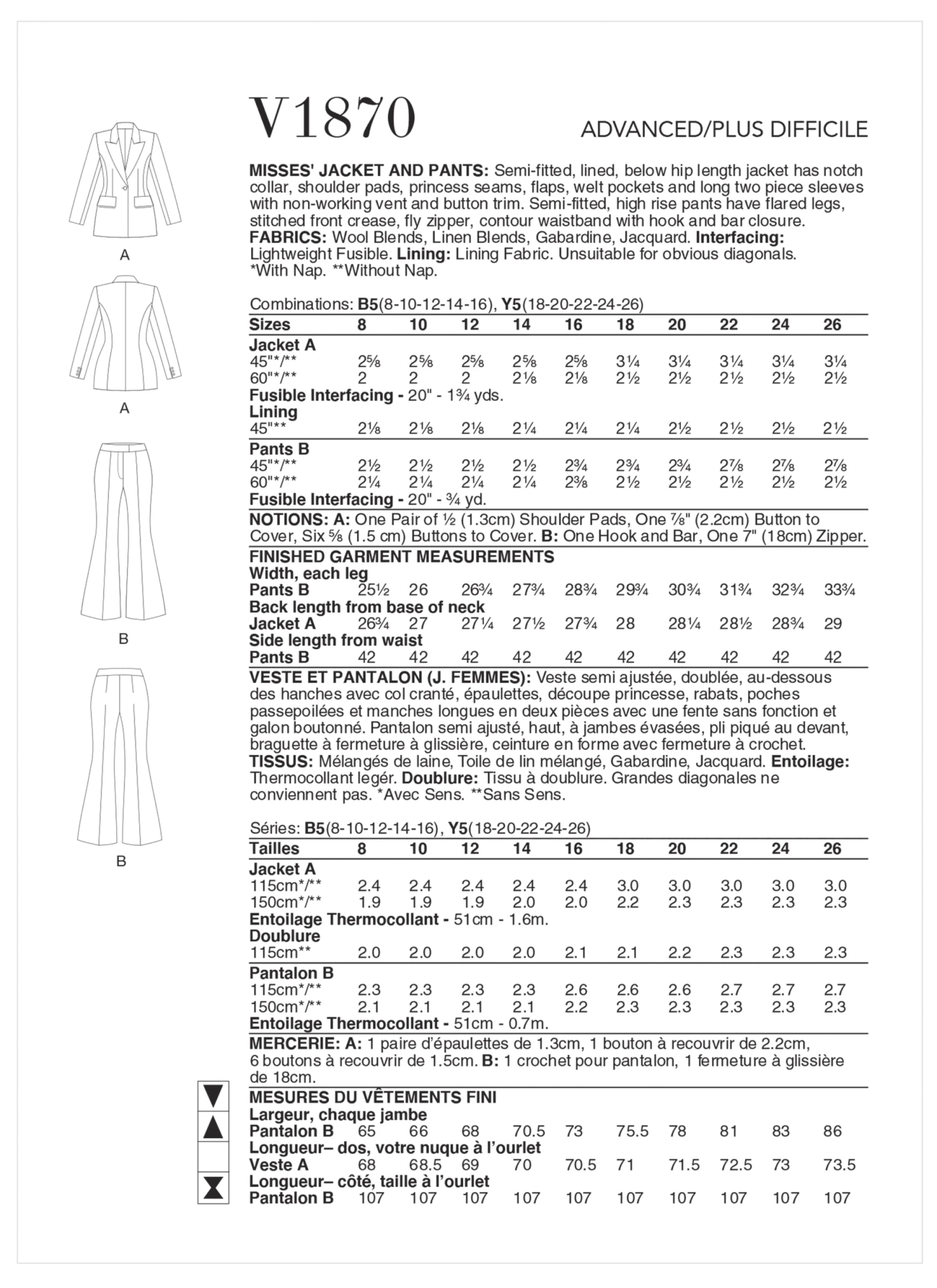Be the first to review “Vogue Sewing Pattern 1870 Misses’ Jacket And Trousers” Cancel reply